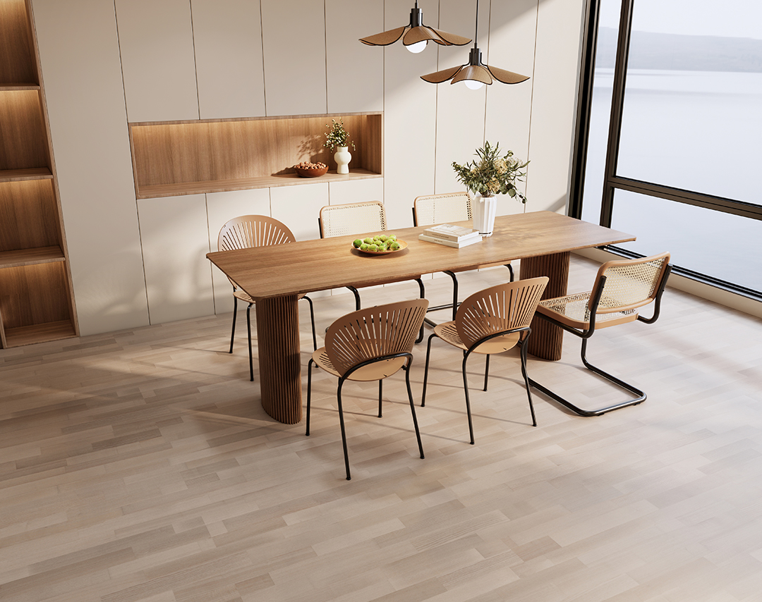拼法简单大方,能够给人以干净整洁的视觉美感。施工的难度低,稳定性能好。如果选用有色差的木地板进行混搭,会显得别有新意,更加错落有致。
