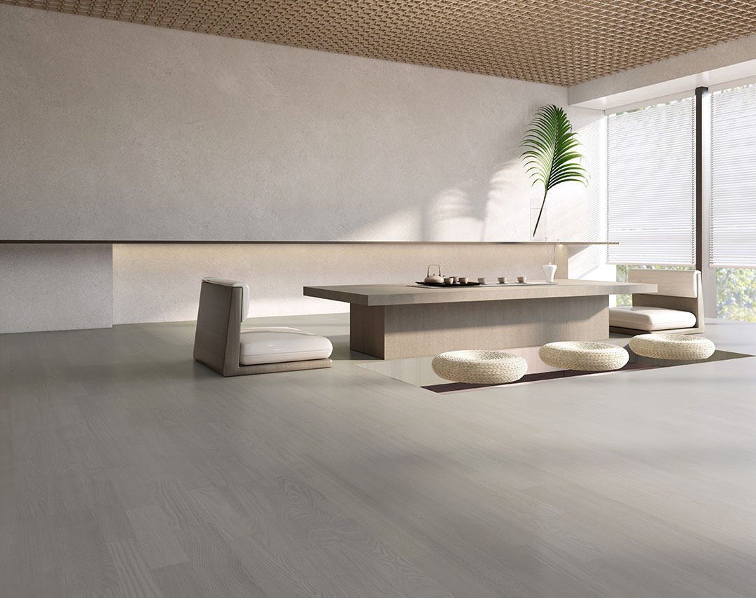 也叫步步高铺贴法,不光讲究排与排之间错位铺贴,还营造出一种像楼梯一样拾级而上的感觉,立体感很强,通铺显得灵动。有着视觉效果简洁明了、工艺简单、材料损耗少的优点。