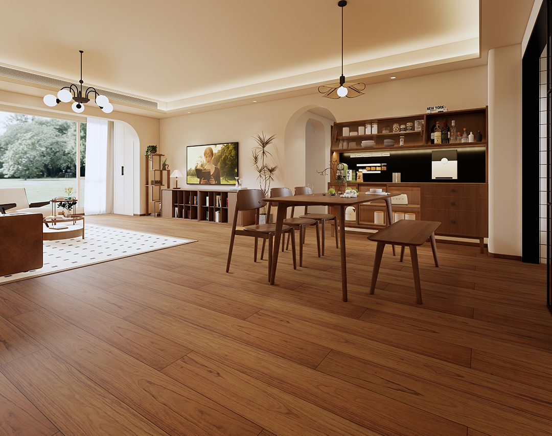 拼法简单大方,能够给人以干净整洁的视觉美感。施工的难度低,稳定性能好。如果选用有色差的木地板进行混搭,会显得别有新意,更加错落有致。