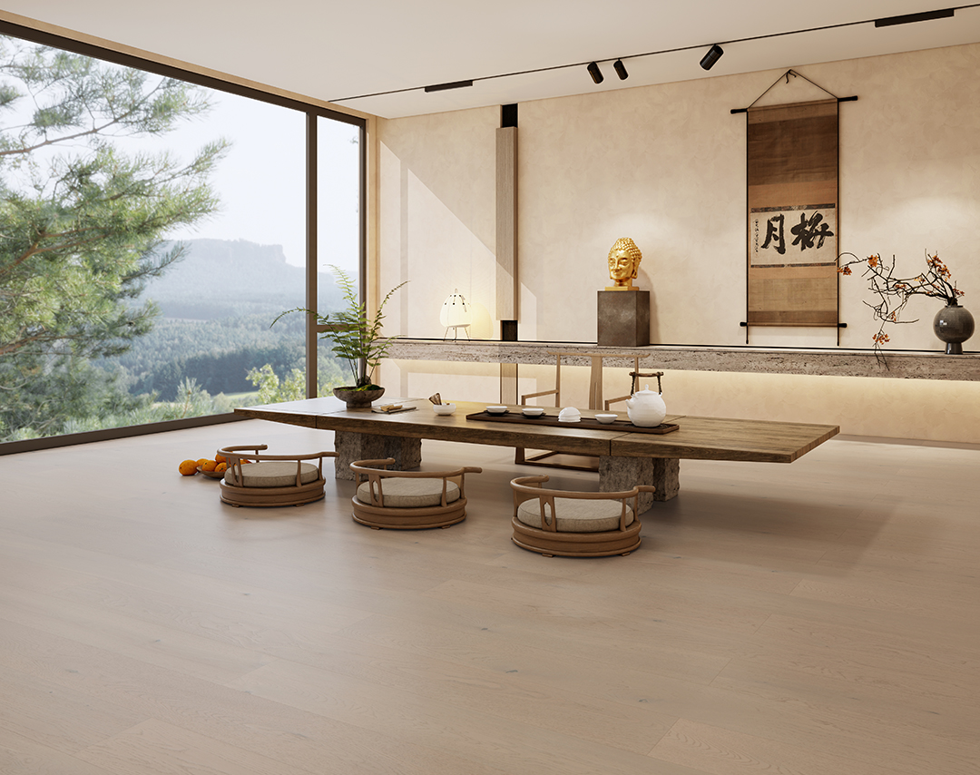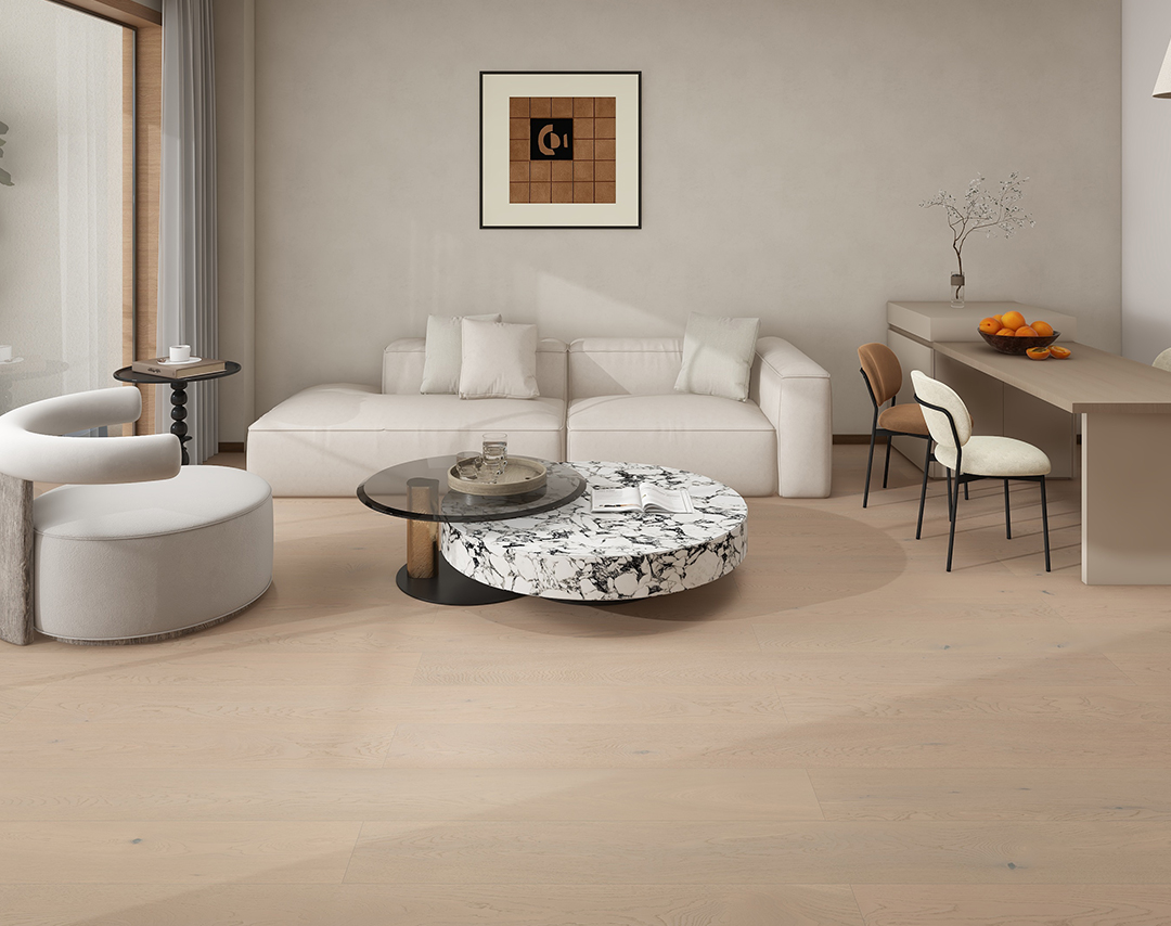 拼法简单大方,能够给人以干净整洁的视觉美感。施工的难度低,稳定性能好。如果选用有色差的木地板进行混搭,会显得别有新意,更加错落有致。