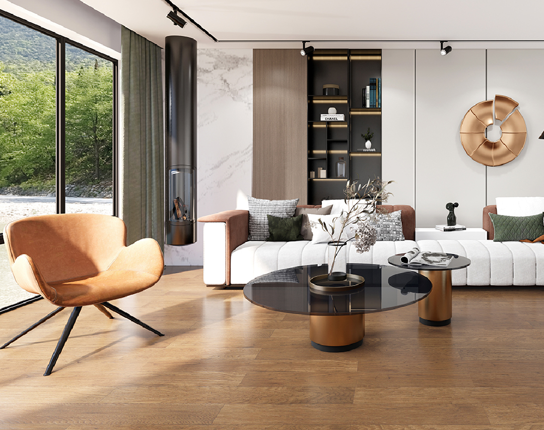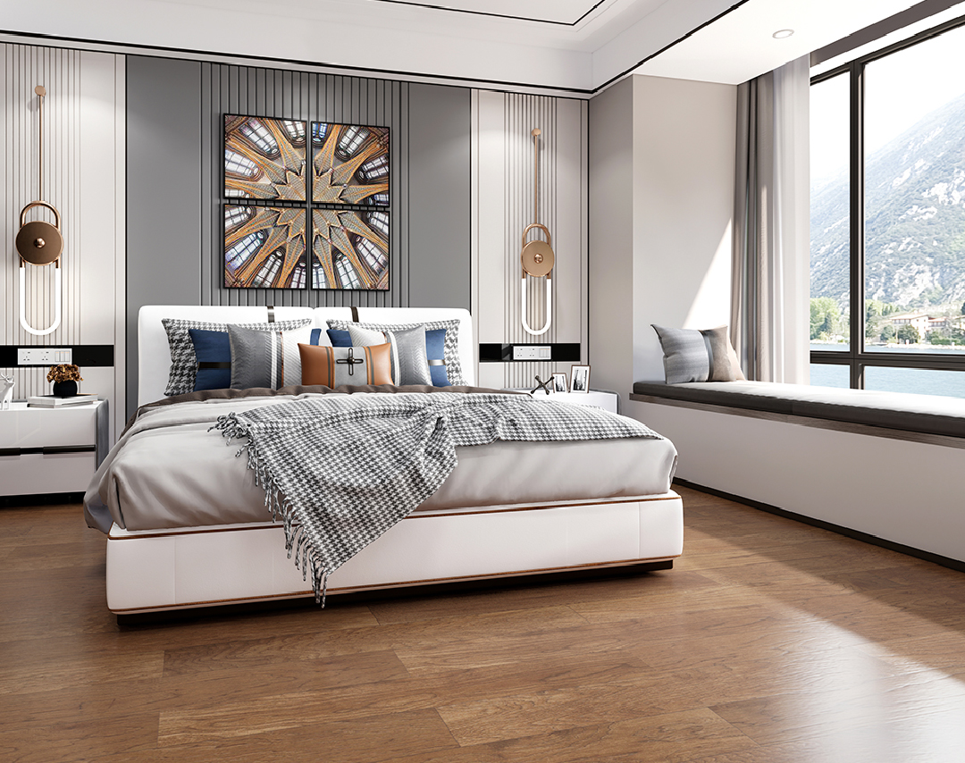 拼法简单大方,不同色差混搭拼合的地板,别有新意,更显错落有致。