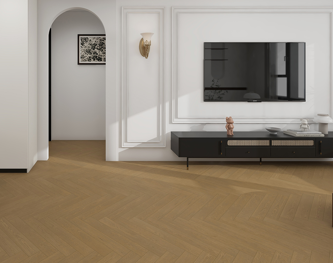 人字拼地板,因拼贴后形似“人”字形而得名。人字拼木地板,排列错落有致,大气又独具个性,能够给人带来强烈的视觉冲击力;将低奢与高贵的气质完美融合并加以演绎,给人复古而又时尚的美感。让家变得更惊艳,更有高级感。