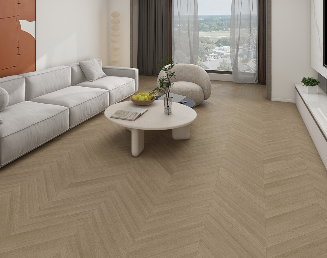 鱼骨拼使用平行四边形形状的单块模板进行拼铺,铺好后的地板线条看起来就像一根鱼骨一般。鱼骨拼地板铺贴好后空间感和立体感很强。横看它的线条宛如波浪一样,波光粼粼,翻涌不止;顺着线条方向看,有将狭窄的空间无限蔓延拓展的错觉。