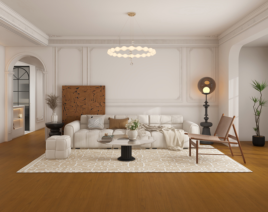 拼法简单大方,能够给人以干净整洁的视觉美感。施工的难度低,稳定性能好。如果选用有色差的木地板进行混搭,会显得别有新意,更加错落有致。