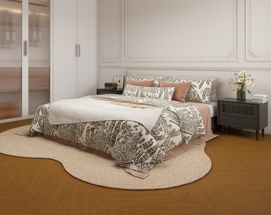 人字拼地板,因拼贴后形似“人”字形而得名。人字拼木地板,排列错落有致,大气又独具个性,能够给人带来强烈的视觉冲击力;将低奢与高贵的气质完美融合并加以演绎,给人复古而又时尚的美感。让家变得更惊艳,更有高级感。
