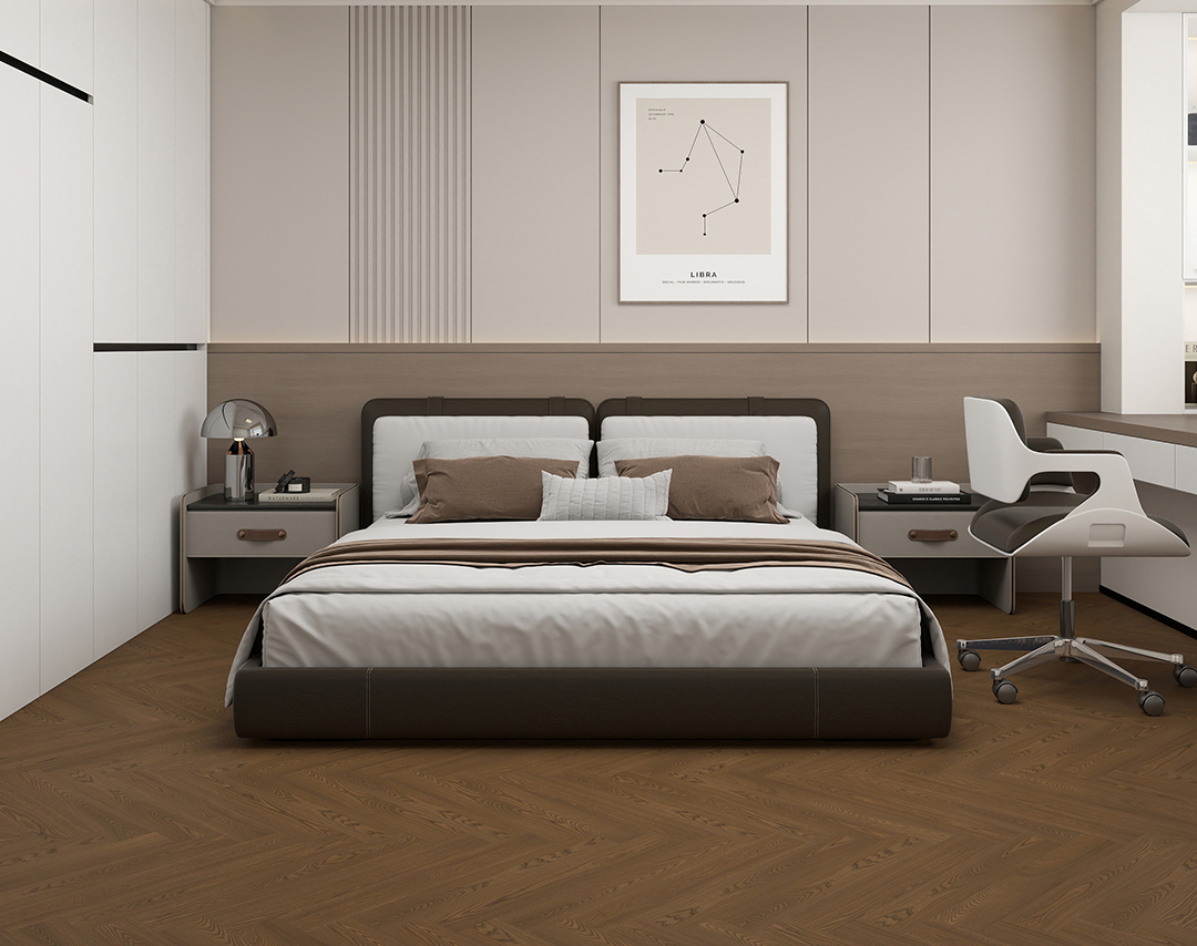 人字拼地板,因拼贴后形似“人”字形而得名。人字拼木地板,排列错落有致,大气又独具个性,能够给人带来强烈的视觉冲击力;将低奢与高贵的气质完美融合并加以演绎,给人复古而又时尚的美感。让家变得更惊艳,更有高级感。