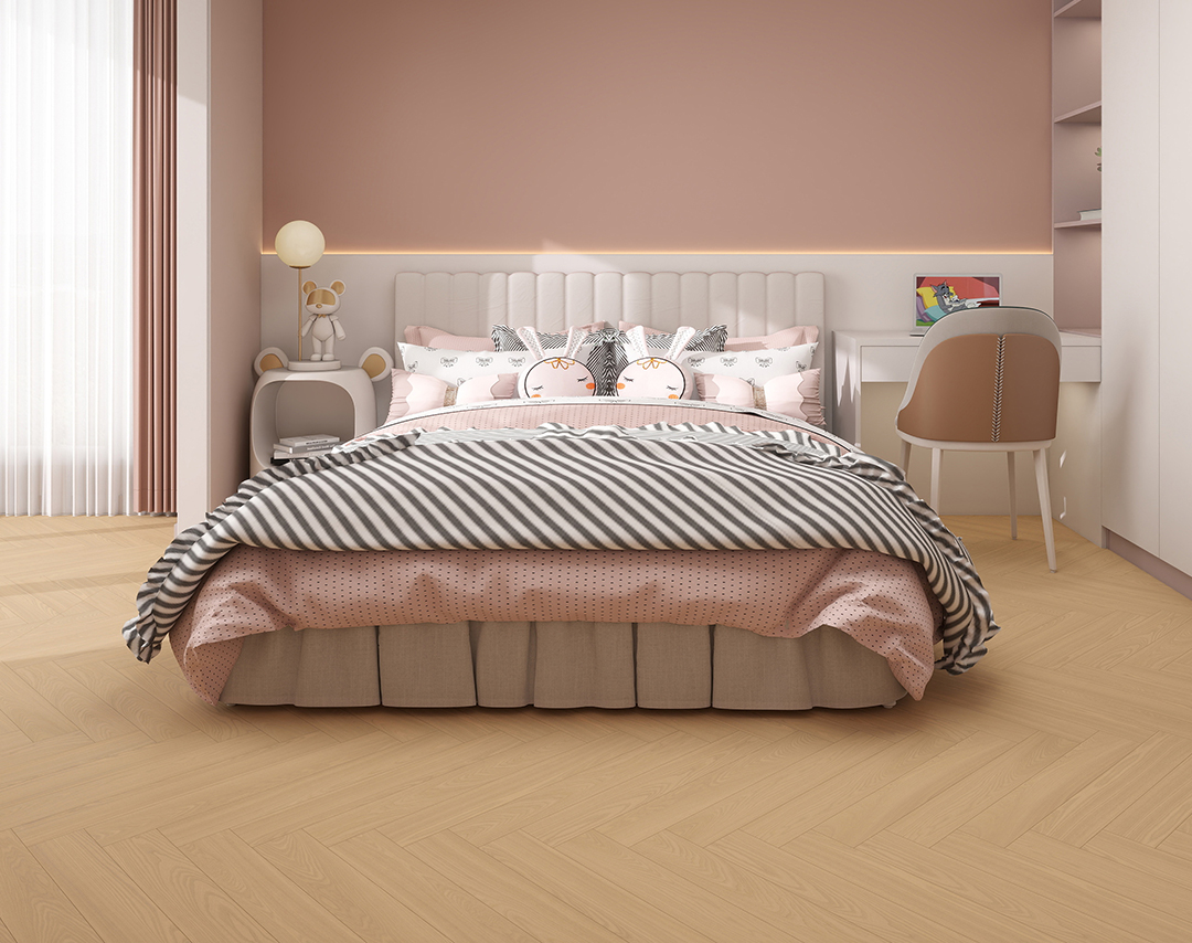 人字拼地板,因拼贴后形似“人”字形而得名。人字拼木地板,排列错落有致,大气又独具个性,能够给人带来强烈的视觉冲击力;将低奢与高贵的气质完美融合并加以演绎,给人复古而又时尚的美感。让家变得更惊艳,更有高级感。