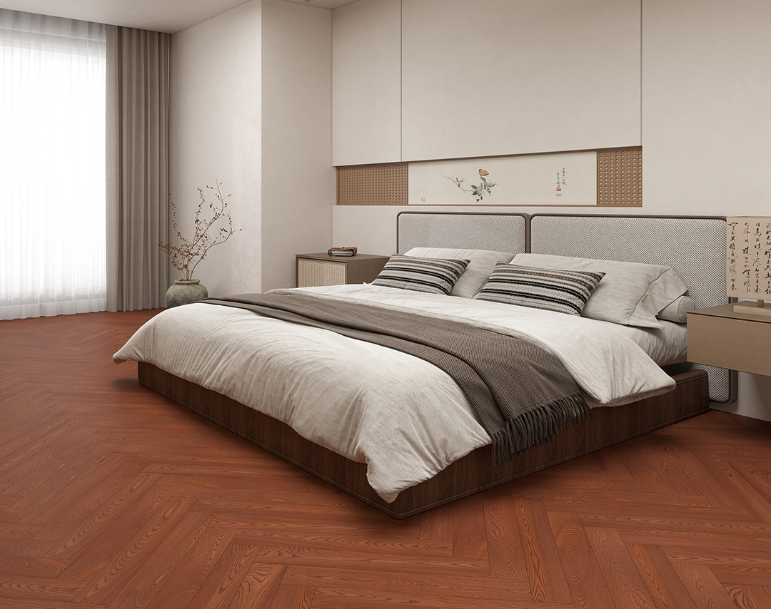 富贵榆把地砖建成“行得通走的红丝绒礼箱”:人字拼如锦缎交融,红咖色采和冷墙,平米抗污易洁仍留恬淡缓震;日光洒落,木质纹理光折挤出成熟稳重珠光,让家常规也是可以都有“富贵自来”的一抹阳光与典礼积极性。