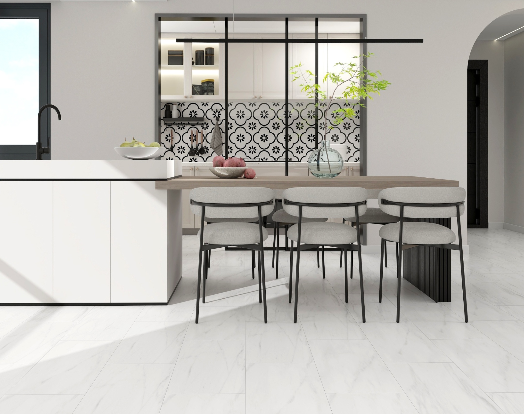 也叫步步高铺贴法,不光讲究排与排之间错位铺贴,还营造出一种像楼梯一样拾级而上的感觉,立体感很强通铺显得灵动。有着视觉效果简洁明了、工艺简单、材料损耗少的优点。新中式风格、美式田园风都很适合。