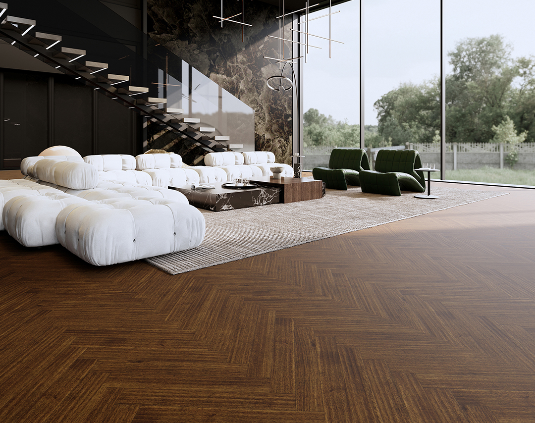 也叫步步高铺贴法,不光讲究排与排之间错位铺贴,还营造出一种像楼梯一样拾级而上的感觉,立体感很强,通铺显得灵动。有着视觉效果简洁明了、工艺简单、材料损耗少的优点。