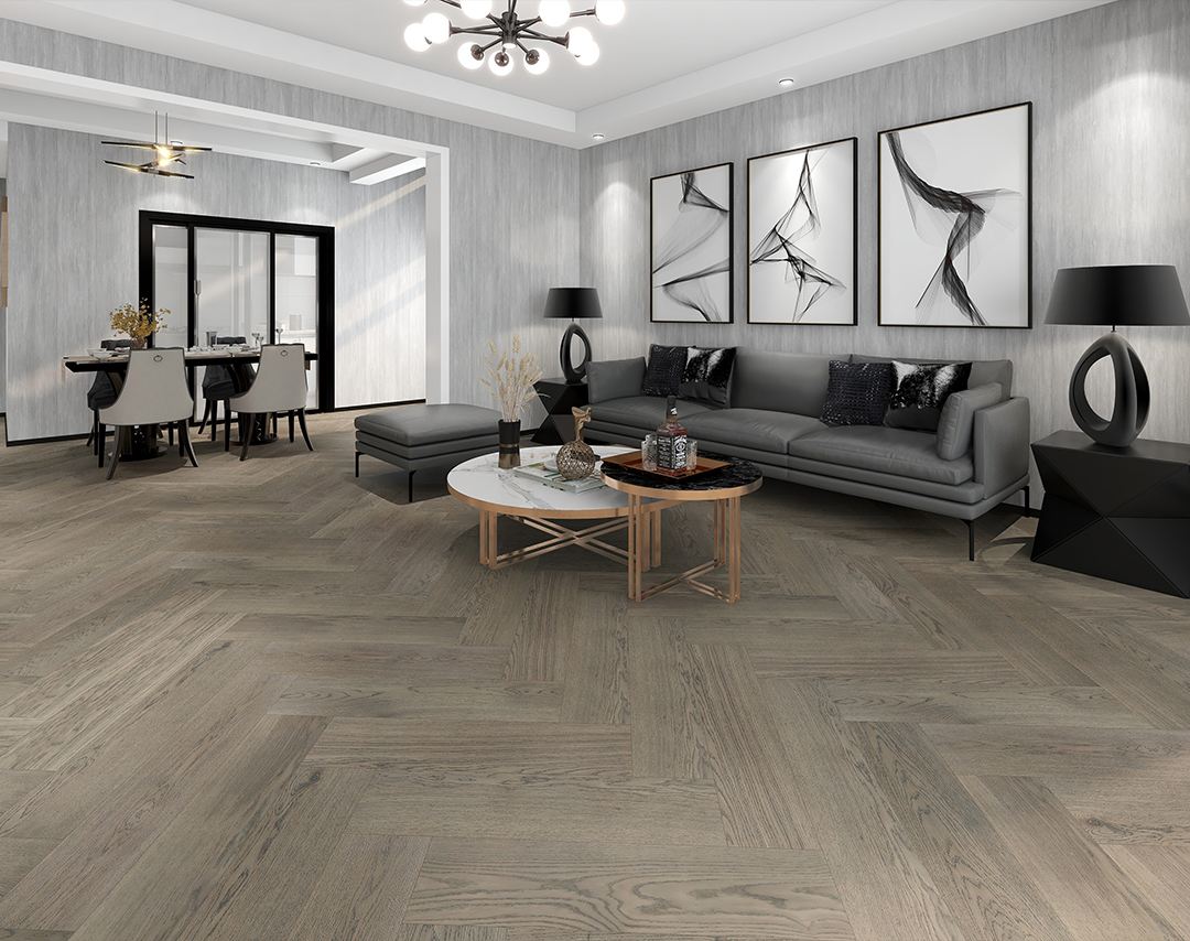 栎木华丽个性化的肌理配合有着灵活蹦跳感的人字拼,底调稳重的灰咖色在横纵的肌理间浓淡相宜,疏朗有致,充电了影响束缚调教,纵情潇潇洒洒的奔放之感,室内空间中萦绕出对自卫权生存的无限的期盼。